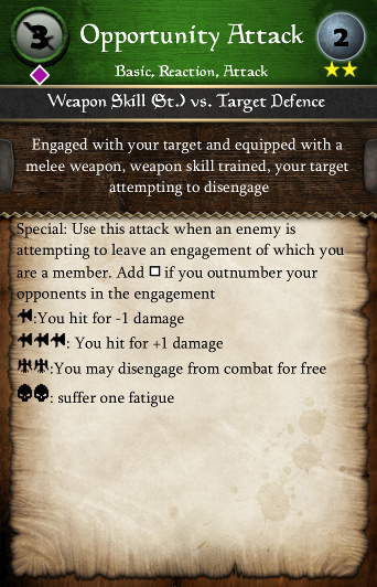 - you can’t do multiple attacks of opportunity in a round, which is handled by giving the card a recharge value