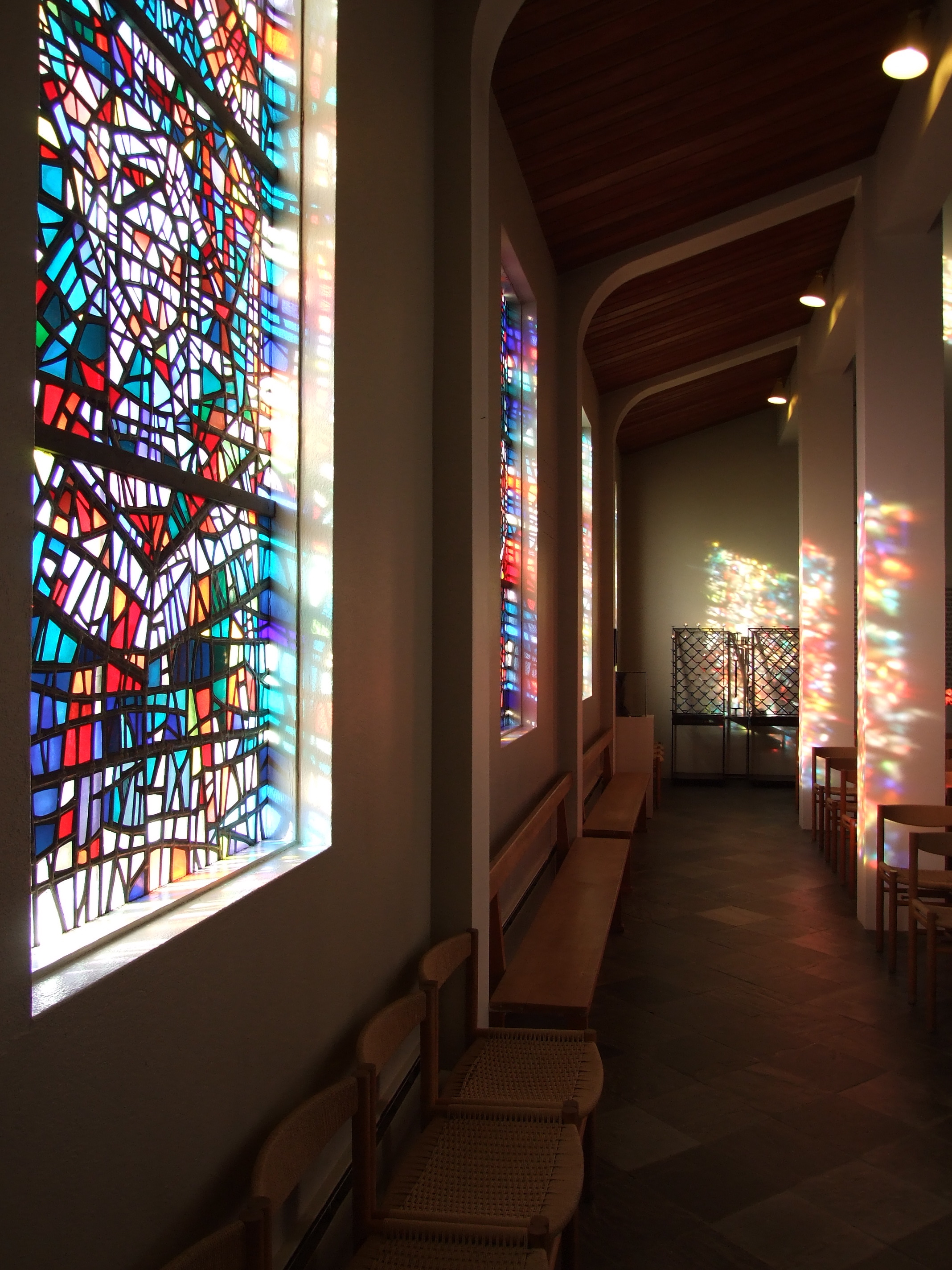 The Churches in Iceland are amazing. I’m guessing this is a unique combination of the nordic sense of design, the Pagan sense of the joy of devotion (as opposed to its dour protestant alternative) and a peculiar Icelandic appreciation of the joys of light and airy spaces. The main church in Reykjavik is a joy to behold, and also has an amazing organ; but I passed many other beautiful churches in Iceland during my brief time there. The stained glass depicted below is from Skaraholt, the church that the bishop of Iceland occupied for many years before he moved to Iceland, and this is now rebuilt as a cultural monument; it is designed in every way to maximize the light available to its worshippers.