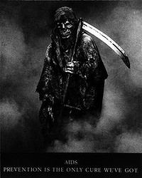 Twenty-five years ago today the Grim Reaper appeared on Australian television to warn us about the dangers of HIV. You can see the ad through this article about the anniversary. I was 14 at the time, and it was truly terrifying. I think it did its job, and scared Australians into sexual responsibility, though now that we have treatments and testing and the like, people may be beginning to become complacent again. Although it now seems a bit hammy, I think it also compares favourably with British health and safety adverts – it’s not as tacky, and makes its point much more succinctly and believably. I particularly like the nod to the holocaust when the narrator says it could kill more people than world war 2 – a nice touch, very understated but very effective.