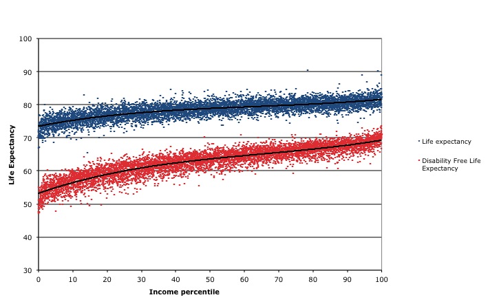 Typically, when a result like this occurs, people will dismiss it as either a statistical oddity or will say that the inequality effect is operating as a proxy for other phenomena – for example, the observed values of inequality measure the effect of past rapid economic growth, or are a proxy for some other aspect of the economy or society (social capital, corruption, etc.). The reason for this is simple: it’s very hard to construct a mechanism by which increasing inequality can reduce mortality, but it’s easy to say that inequality increases as wealth does, and that increasing wealth reduces mortality (a fairly solid fact). There is a model for how inequality can increase mortality, through mechanisms such as reduced social welfare support, or inability to seize necessary cultural or physical capital – there are quite a few convoluted mechanisms proposed by which relative inequality can have this effect in wealthy countries like the UK.