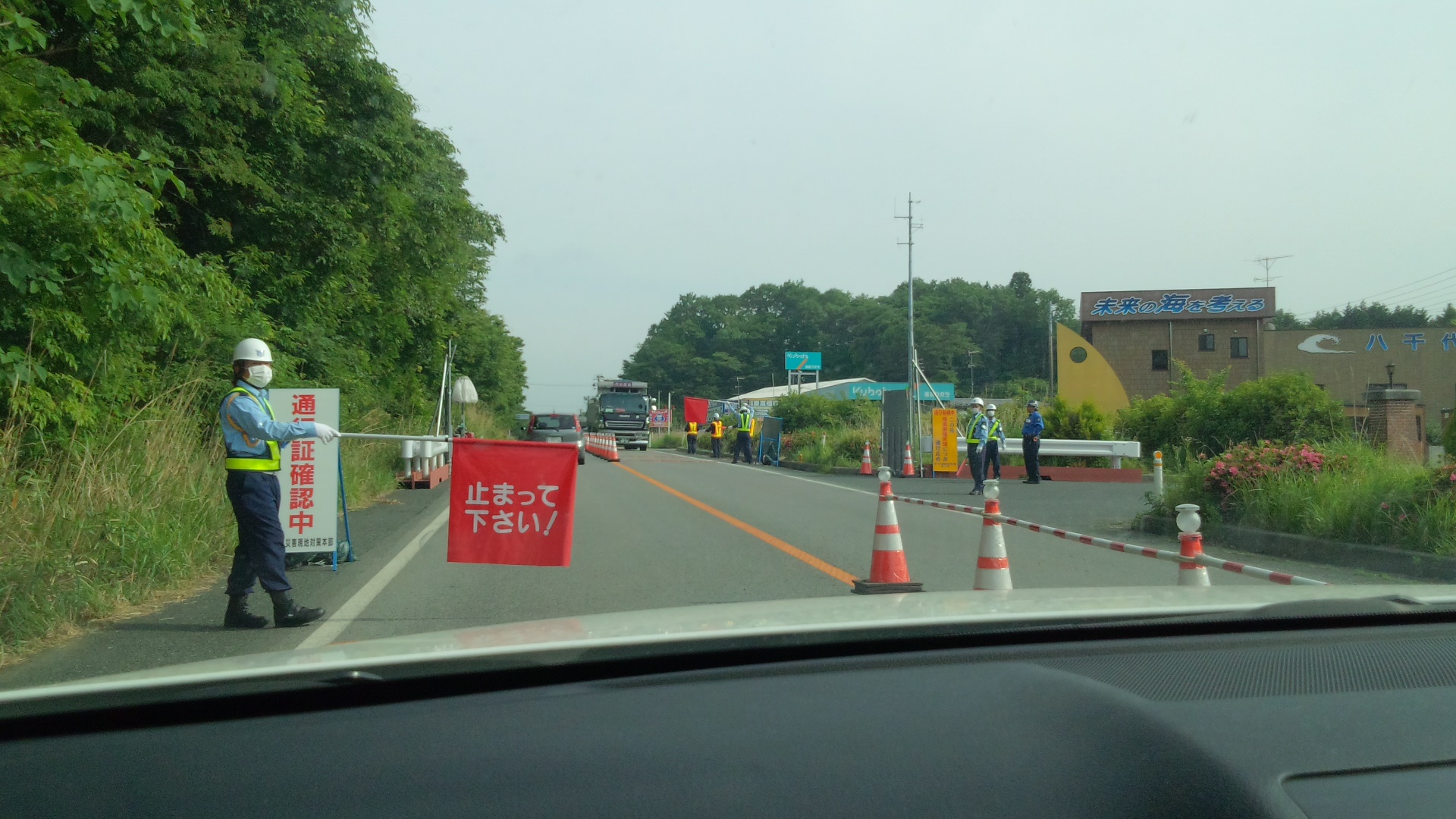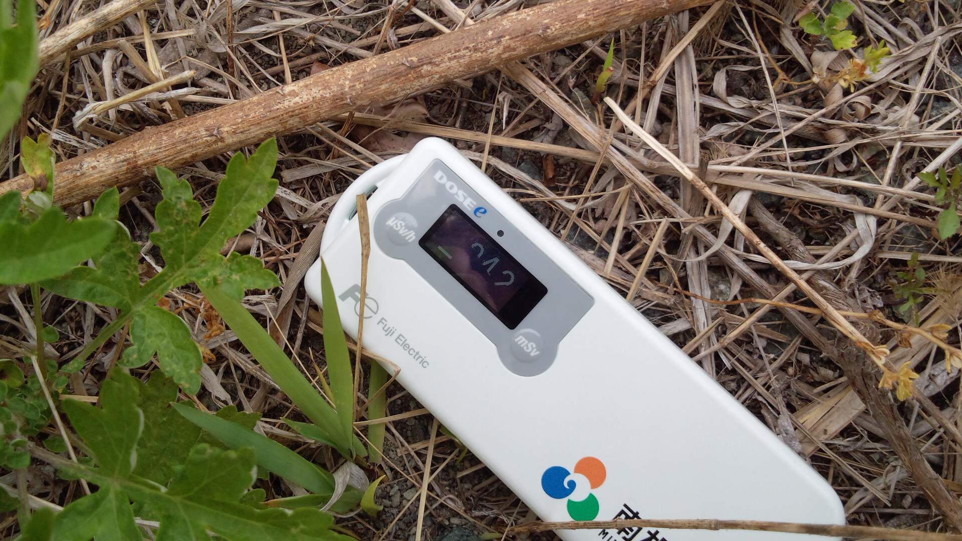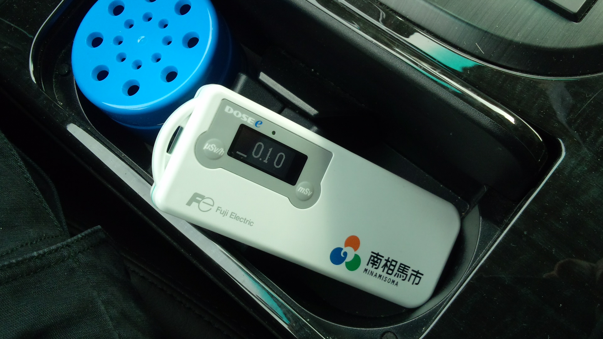 For this drive we first headed in the direction of Namie, then turned off the road to head towards the beach and the tsunami zone. We took a radiation counter with us (shown above) that measures external exposure in micro-Sieverts per hour estimated from 30 second averages. This means you can tell what your exposure would be if you stayed in the particular spot for an hour. Wikipedia tells me that normal background radiation levels are about 0.4 milli-Sieverts per year, which would be about 0.05 micro-Sieverts per hour, so the background level in the car is not so bad.