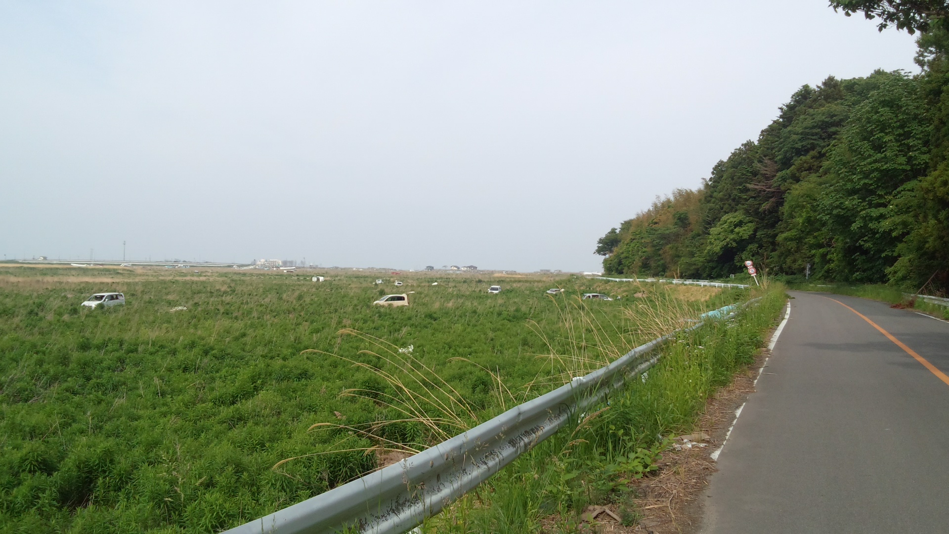 This is a picture of the landscape immediately to the right of the barrier. There is a swampy area full of frogs, insects and small birds, and then beyond that a small hill that would once have been a satoyama, surrounded by local homes and rice paddies and probably with a small shrine in the middle. Satoyama are a unique form of ecosphere intimately connected with Japanese farming techniques, but the satoyama around here have gone wild. This area was thick with birdlife, so standing here I could hear a cacophony of bird song such as I have never heard in rural Japan before. Usually birdsong in Japan is limited to a few common croaking and sqwarking birds, but here there was a symphony of singers. High, warbling birdsong like something from Europe mingled with strange, throaty cries and a kind of laughing whoop that I have never heard before. The area was alive with animal life. In just two years, this whole area has become a huge wildlife sanctuary, and birds that would not normally come near human settlement have proliferated. I think usually you would only hear these birds in the deepest forests, or perhaps in some rare farming communities; but here they are easily accessible in amongst the new growth of the devastated area. I think the people of Minamisoma should leave this area as it is; as a kind of combined wildlife park and memorial, so people can visit to enjoy the sight of Japan how it once would have been, before it was cultivated; and simultaneously appreciate the fury of the ocean, and the damage that was done because the post-war builders ignored the stories handed down to them from previous generations.