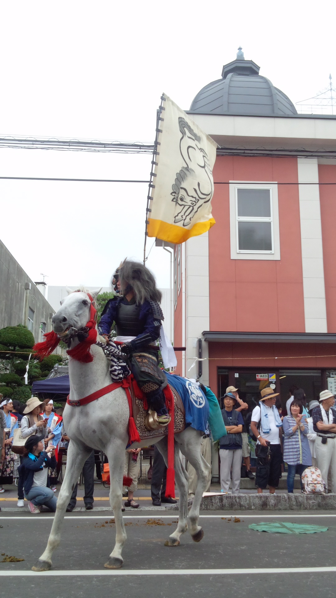 Fun for all the family! The riders fell because they were hurtling around a tight track on horses without proper stirrups, with massive flags strapped to their backs. The horse fell because it tripped over its rider. No one was wearing a helmet. This is the most dangerous festival I have ever seen in Japan, by a long shot, and with an injury rate of 1 per 12 participants would have to be one of the most injury-prone sports I have ever seen. It was at times quite hideous to watch.