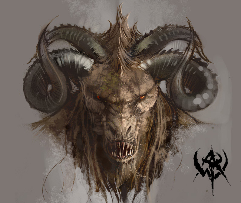 They were just passing around a small embankment when they stumbled on two beastmen munching on the body of a dying man. One beastman was a wargor, one a gor. It was a scene of horror, with the smaller gor chewing on a severed hand, and the larger wargor crouched above the still-twitching body, loops of the man’s guts hanging from its snarling lips. They both turned to look at Raknar and Dvumir at the same time, and with yells and snarls battle was joined.