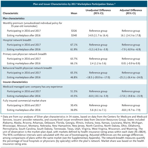 The new article in the NEJM explores this issue in detail, by collecting data on all the plans that operated in exchanges from 2016 – 2017 and comparing those that left with those that remained. The authors make the particular point that once the exchanges opened the marketplace itself changed, and this had implications for insurers. They say:
