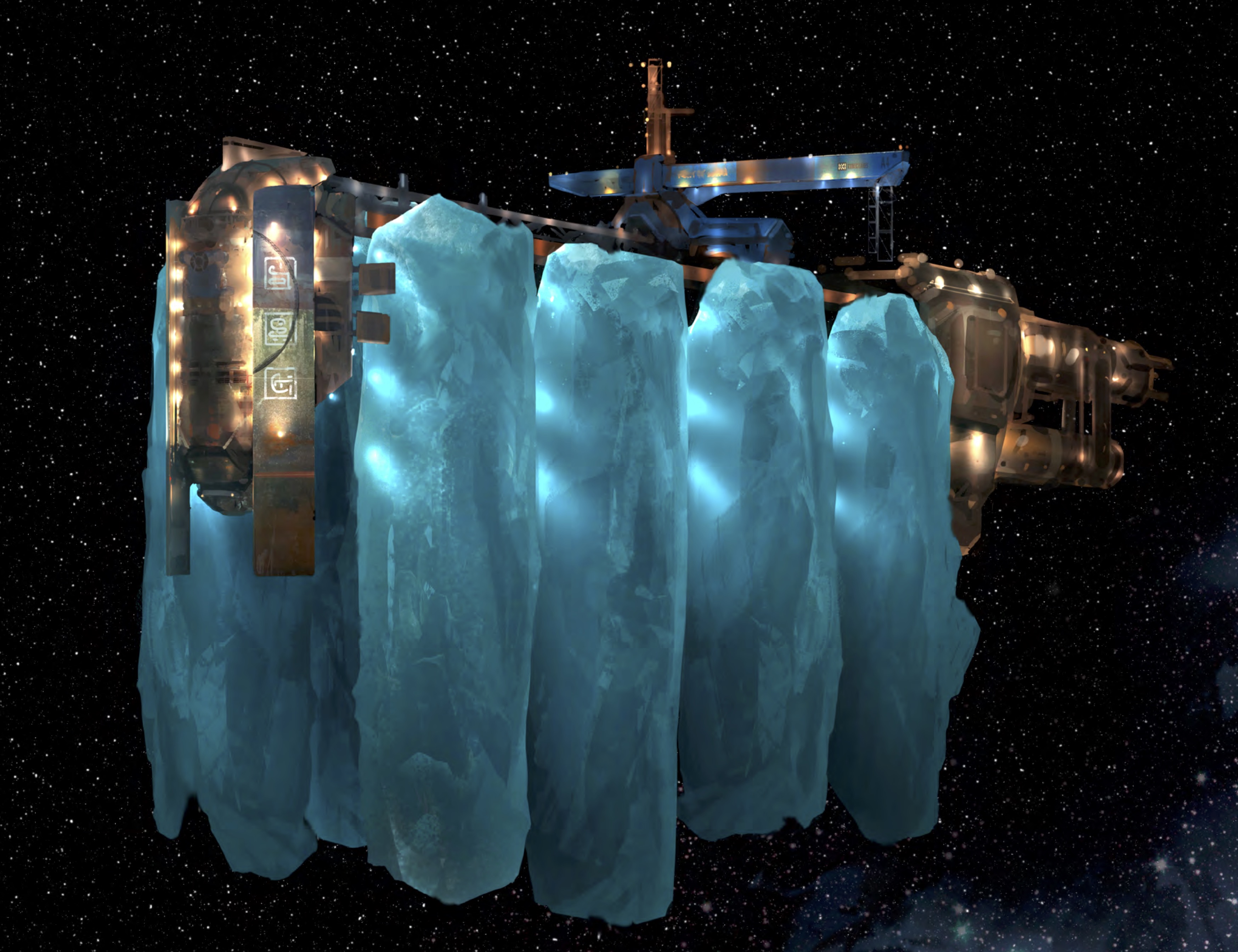 She was happy to talk, and begged them for help. Her name was Ayda Leon and she was the deckhand on this ship. They had been on a standard mission transporting ice from the asteroid belt to Kua, but one of their crew had noticed on routine inspection that one of the ice blocks held four stasis chambers inside it. They dug out the stasis chambers and put them in the forward observatory, but their captain had opened one, and been possessed by a djinn. After the possession it freed the creatures in the other chambers, possessed them, and started killing the crew. She had fled into the maintenance ducts, and the engineer Atallah Ard had fled to the engineering rooms. Before he fled, though, he took control of the ship, turned it to the Eye of Anubar, and set it to full power. Now he had locked himself in the machine halls, shut off power to the bridge, and was waiting to die. Another member of their crew, Kolb Zir, had locked himself in the workshop ‘midships, and had jammed the elevator to the bow. She could not convince Atallah to turn off the engines and without access to the bridge they could not turn the ship around or change its course, so they were doomed unless they could kill the djinn.