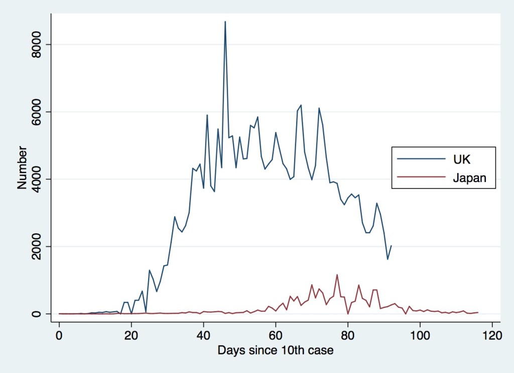 Why was Japan’s response to the coronavirus so much more effective than that of so many other high-income countries? In this post I will explore a little the key factors that affected the Japanese response, what made the numbers grow so slowly and why the lockdown was more effective than in many other countries. In particular I will compare Japan with the UK, as a model of the differences between an effective and an ineffective response.