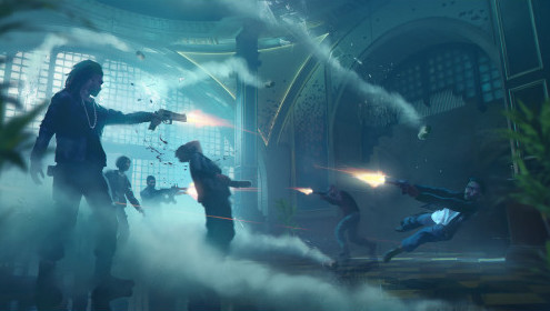 As they entered the plaza three of them were shot, hit by bullets from accelerator pistols. Oliver took a bullet to the heart, falling immediately, and everyone else retreated to cover. Saqr ran to the coffee stall and vaulted over the counter into cover, but the others continued to take fire as they retreated. They could not immediately see their attackers, who were in cover in shops around the plaza, shooting accelerator pistols that are deadly accurate and deadly silent. After a few moments of confusion Kaarlina ran out to the plaza to give first aid to Oliver, and Siladan dashed to the flowerbeds to take cover until he could see their attackers. Saqr saw one hiding in the raw fish restaurant and took a shot, but in return received sustained fire that burst open the second artery in his leg; he fell behind the counter, painting its decorated coffee pots crimson as he fell.