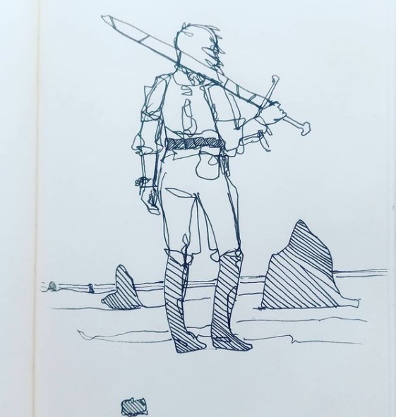 - A folio of sketches labeled “The Gull’s sketches” which contain pictures of a changeling, a human astrologer, a human explorer, and a human warrior, with probably a dwarven stormcaller they guessed was “The Gull”, because these pictures seemed more like self-portraits