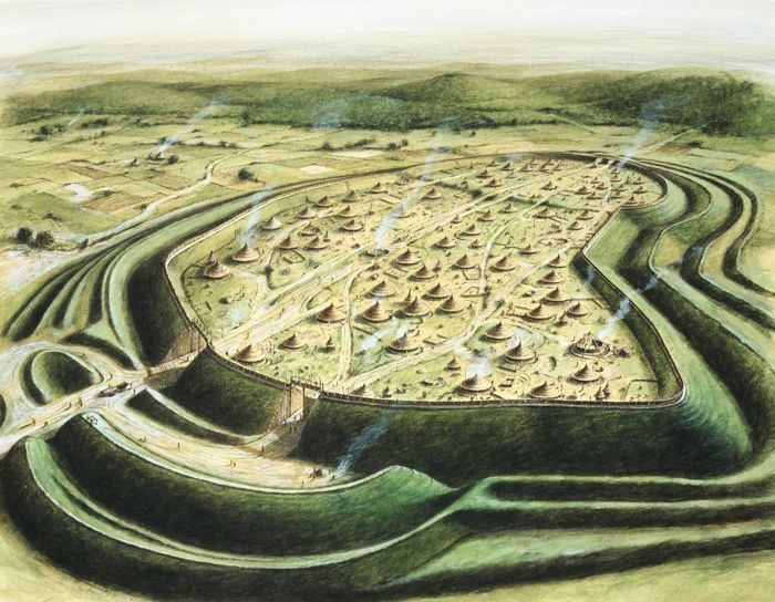 After their successful battle at the waterfall they rested only briefly before returning to a worried-looking Hugo Tuya on the road to Ell’s Hamlet. The journey from there was short, passing through the same complex of low hillocks and slightly marshy hollows that they had passed through the previous day, and where Rimgalt and his raiders now lay rotting. Towards late afternoon they reached Ell’s Hamlet, easily in time to clean up before the evening meal. Ell’s Hamlet was a small and secure village of only a few score buildings, set inside a combined stone wall and wooden palisade atop an ancient earthworks. The entrance road passed through a small complex of raised mounds, on which stood empty wooden archers’ nests, and passed through a wooden gatehouse in one of the few gaps in the earthworks’ lower barrier wall. From there they passed through a switchback road up to a higher level, overlooked by a smaller internal palisade, before entering the small village area itself.