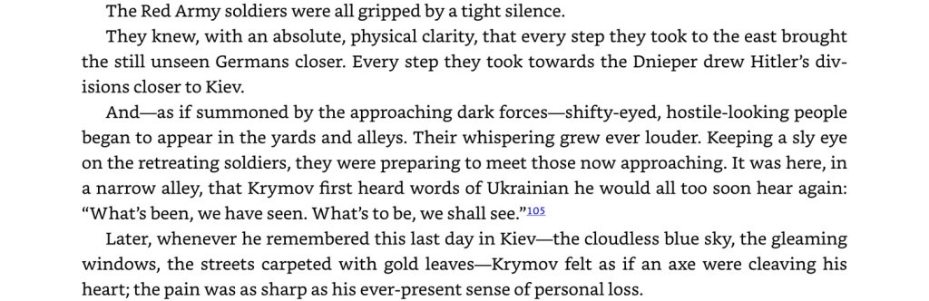 Russians, of course, have no illusions about this double-genocide nonsense, the evils of Nazis or the nature and persistence of Ukrainian Nazism. Here is what Vassily Grossman had to say about the looming threat of Nazi collaboration in Ukraine in his famous book Stalingrad: